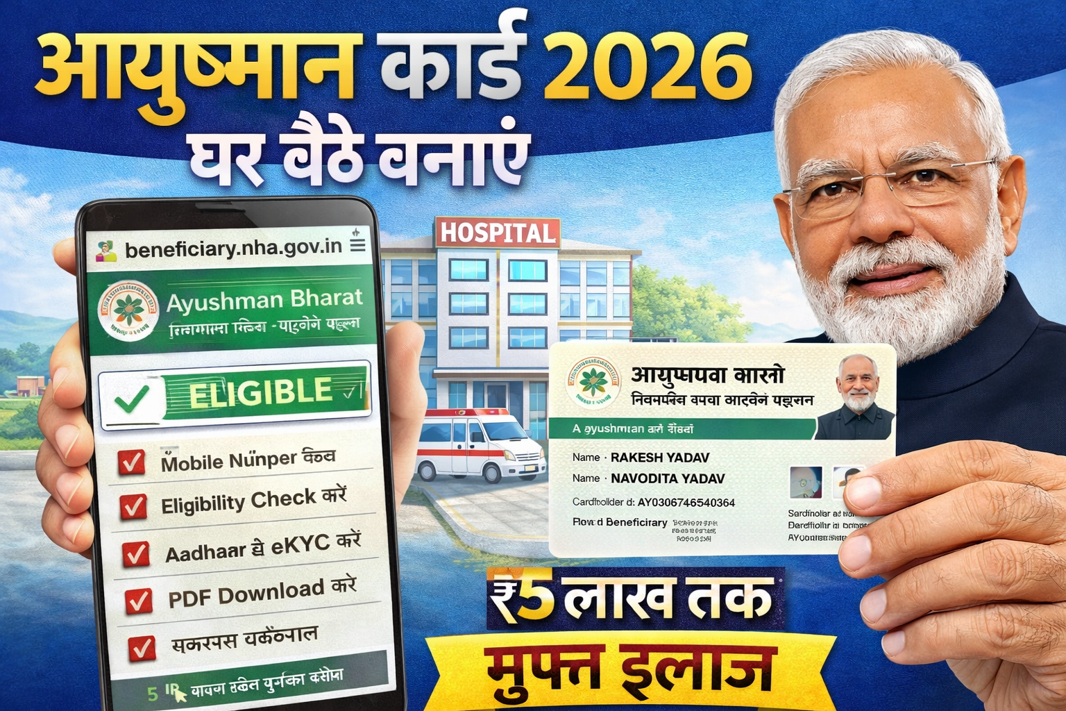 आयुष्मान कार्ड 2026 में इस योजना में बड़ा अपडेट आया है, जिससे अब आप घर बैठे मोबाइल से ही आयुष्मान कार्ड बना सकते हैं। पहले जहां CSC सेंटर जाना पड़ता था, अब पूरा प्रोसेस ऑनलाइन हो गया है।