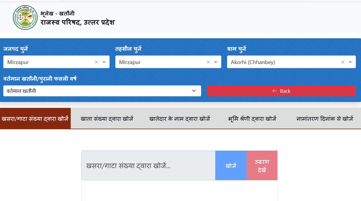 Step 2 होमपेज पर आपको “खसरा/खतौनी की नकल देखें” का ऑप्शन मिलेगा